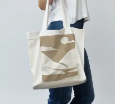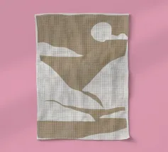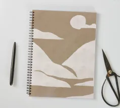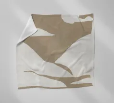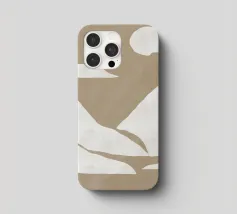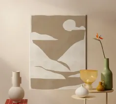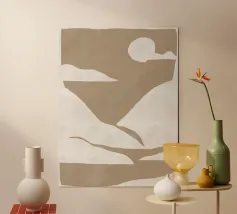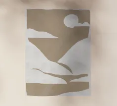 Forme astratte nei toni del beige creano una composizione minimalista su uno sfondo chiaro. Il disegno presenta forme geometriche irregolari che suggeriscono un paesaggio naturale.