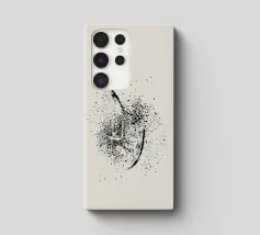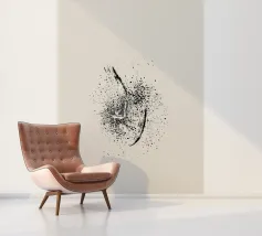 Schizzi di vernice con linee bianche e nere su sfondo beige.