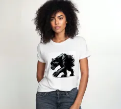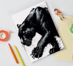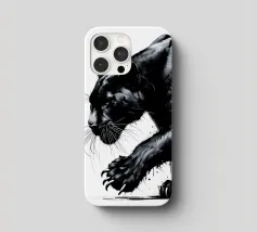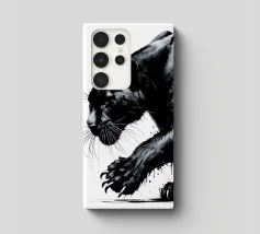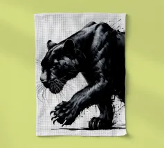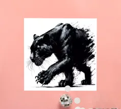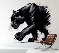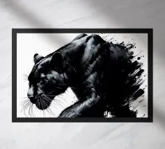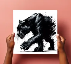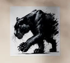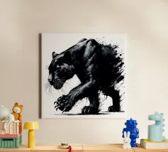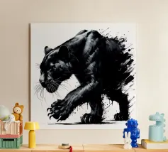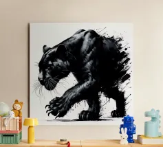 Quadro acrilico astratto moderno di una pantera nera in caccia.