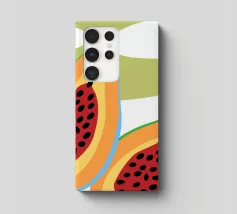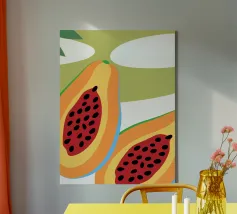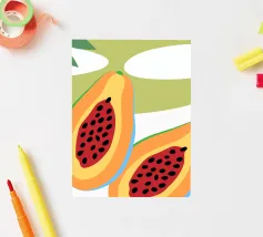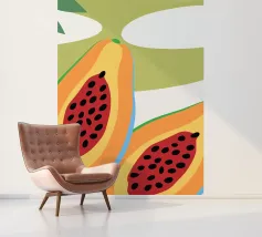 Frutto fresco di papaya. Design minimalista e colori vivaci