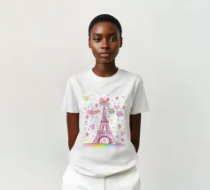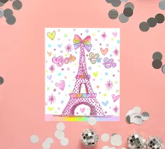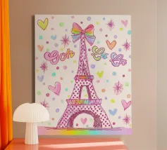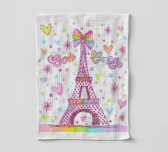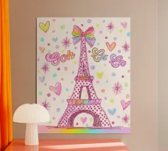 Un disegno della Torre Eiffel con pois e cuori.