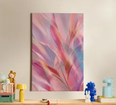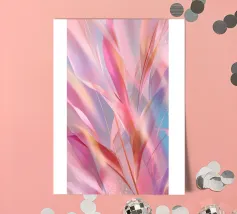 Un'accattivante composizione digitale che fonde morbide forme botaniche con una sognante tavolozza di colori pastello. Questa opera d'arte astratta evoca il delicato movimento delle foglie e della luce, perfetta per creare un senso di serenità ed eleganza in qualsiasi interno moderno. Ideale per gli amanti dell'arredamento dopaminico e per gli appassionati di arte floreale contemporanea.