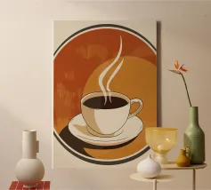 Un motivo minimalista ma memorabile che presenta una tazza di caffè fumante nei caldi toni della terra. Le linee pulite e l'aspetto vintage rendono questo pezzo particolarmente interessante per i fan del retrò e gli amanti del caffè. Emana calore, calma e intimità, perfetto per cucine, caffè, angoli per la colazione o uffici. Questo quadro si rivolge a tutti coloro per i quali il caffè è molto più di una semplice bevanda, un momento di pausa da assaporare.