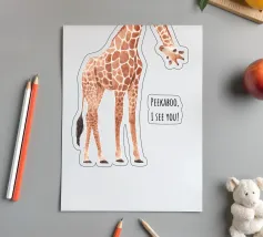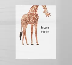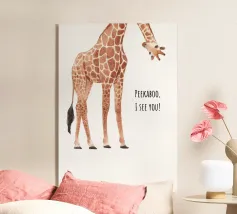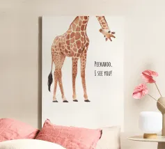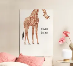 Portate gioia e allegria nel vostro spazio con questa affascinante opera d'arte di giraffa. Caratterizzata dal dolce disegno "Peekaboo, I see you!", è perfetta per le camerette, le stanze dei bambini o per chiunque ami gli animali del safari con un tocco divertente. Una deliziosa opera d'arte da parete che aggiunge calore e sorriso a qualsiasi casa.