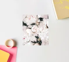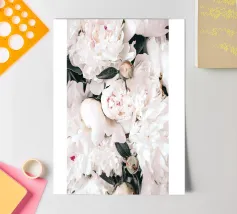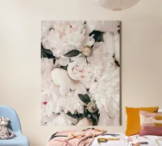 Questo elegante disegno mostra un'abbondanza di peonie bianche in piena fioritura. I delicati petali rosa chiaro e le foglie verde intenso emanano eleganza pura e un legame con la natura. Questo motivo floreale porta un'atmosfera lussuosa e rilassante nella vostra casa e si abbina perfettamente a murales, cuscini, tazze o cover per cellulari. Ideale per gli amanti dell'arte floreale classica e delle decorazioni senza tempo, questo disegno aggiunge un tocco di freschezza e naturalezza a qualsiasi ambiente.