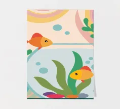 Questa illustrazione rilassante presenta una varietà di pesci colorati che nuotano con grazia in una vibrante barriera corallina.