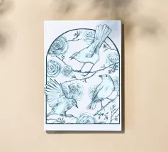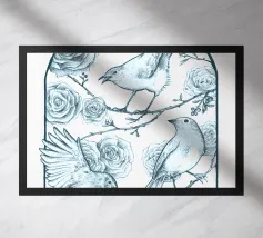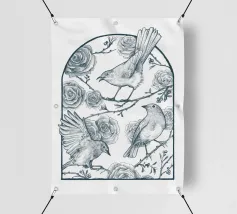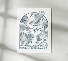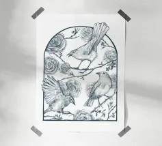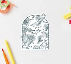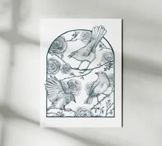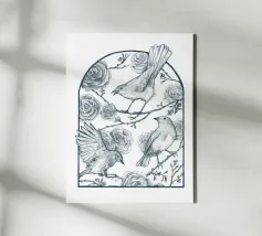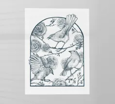 Due allegri pettirossi appollaiati insieme, che catturano l'essenza del fascino della natura. Un design delizioso, perfetto per gli amanti degli uccelli e della natura.