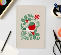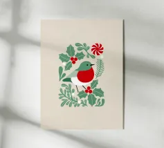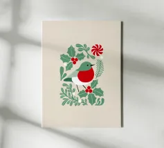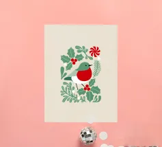Celebrate il fascino dell'amato pettirosso natalizio con questa delicata illustrazione Art Nouveau. Simbolo di calore e allegria invernale, questo pettirosso in natura con agrifoglio, verde e dolcetti festivi è disegnato con linee aggraziate e dettagli minimi, in una tradizionale tavolozza festiva di verdi tonali e rossi vivaci su un avorio dalla texture morbida.Parte della Nouveau Festive Collection, aggiunge un tocco poetico e senza tempo alle pareti e agli accessori stagionali: un regalo perfetto per gli amanti dell'elegante stile festivo.