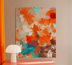 Piacere caldo pittura astratta rosso arancio marrone estate pennellate ruvide verde acqua