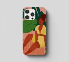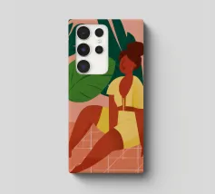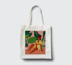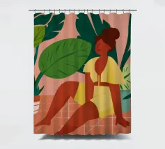 Ritratto di una donna con un top giallo, circondata da una rigogliosa giungla di piante d'appartamento. La scena è una vibrante, gioiosa e bellissima celebrazione di una donna orgogliosa e felice delle piante nel suo santuario.