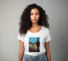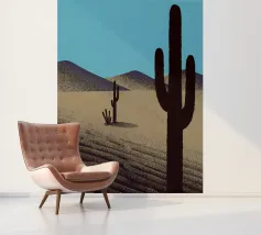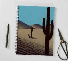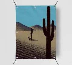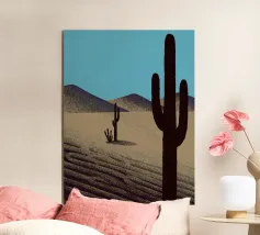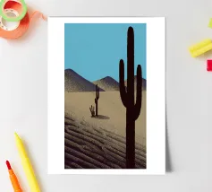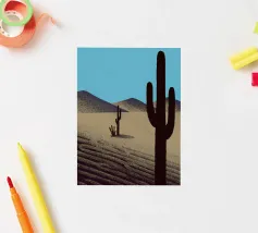 L'accattivante bellezza del deserto! Questo disegno presenta cactus che prosperano in mezzo a una vasta distesa di sabbia, creando un'atmosfera pacifica e serena.