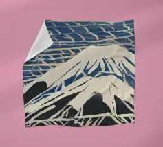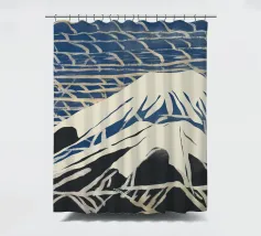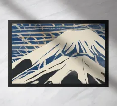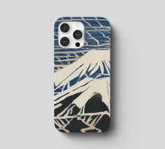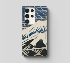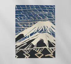 Una rappresentazione stilizzata mostra una catena montuosa con cime cariche di neve sotto un cielo dinamico e astratto. Le linee geometriche del cielo e del primo piano creano un senso di movimento ed energia.