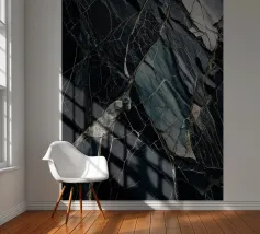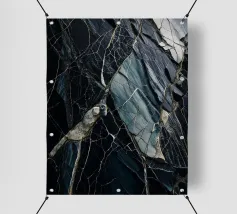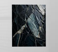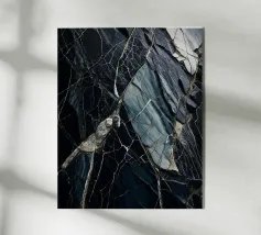 L'immagine mostra una nobile superficie in pietra d'agata dalle profonde sfumature nere, grigie e pastello, intervallate da sottili venature dorate. La struttura spezzata ma artistica conferisce un'estetica lussuosa e organica. Ideale per l'interior design, per rivestimenti esclusivi, per piastrelle di marmo o come sfondo sofisticato. La combinazione di elementi scuri e scintillanti crea un look moderno ed elegante. texture del marmo, venature dorate, pietra agata, superficie di lusso, arte astratta, pietra naturale, interior design, estetica nobile, dettagli dorati, design di tendenza, esclusivo