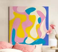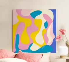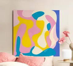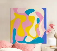 Un disegno pulito e moderno, caratterizzato da tenui tonalità di blu e rosa pastello disposte in un layout geometrico minimalista. Il motivo combina forme semplici per un effetto equilibrato e rilassante. L'azzurro aggiunge una sensazione di calma e ariosità, mentre il rosa delicato dona calore e un sottile contrasto. Questo motivo sobrio ma elegante offre un tocco di fascino contemporaneo con una delicata tavolozza di colori.