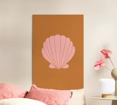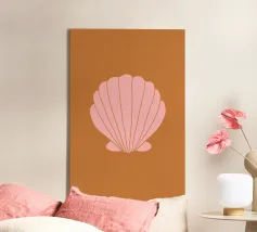 Conchiglia rosa su sfondo in terracotta