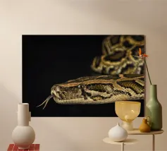 Scoprite la feroce eleganza della natura con il nostro poster con foto del pitone. Questo sorprendente primo piano cattura ogni dettaglio - dagli occhi ipnotici alle intricate squame - su uno sfondo nero e drammatico. Perfetto per aggiungere un tocco audace ed esotico a qualsiasi spazio, questo poster è progettato per affascinare e ispirare.