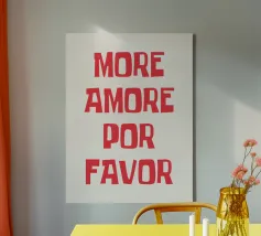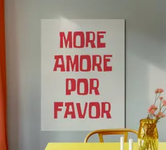 Questo divertente poster More Amor Por Favor, caratterizzato da una tipografia di tendenza, aggiungerà un tocco di colore alle vostre pareti.