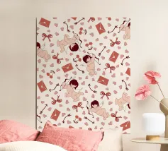 Celebrate l'amore con questo incantevole motivo caratterizzato da putti giocosi, cuori, fiocchi e lettere d'amore. Con i suoi toni caldi e il suo design stravagante, questa stampa è perfetta per le decorazioni di San Valentino, per i regali romantici o per la cancelleria. I dettagli delicati e l'atmosfera gioiosa ne fanno una scelta elegante per aggiungere un tocco di amore e dolcezza a qualsiasi spazio o prodotto.