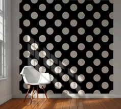 Un motivo audace ed elegante, caratterizzato da morbidi puntini color crema su uno sfondo nero intenso. Questo disegno ad alto contrasto e senza tempo combina il fascino retrò con l'eleganza moderna, perfetto per la moda, l'arredamento e le stampe artistiche.
