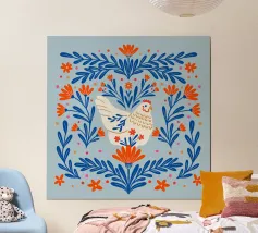 Celebrate il fascino della natura con questa moderna opera d'arte che raffigura una simpatica gallina circondata da fiori rigogliosi. La forma delicata della gallina, abbinata al fogliame e ai fiori circostanti, crea una composizione equilibrata e ispirata alla natura, perfetta per gli amanti dell'arte che amano i pezzi unici e stravaganti.