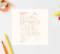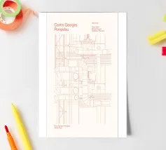 Una planimetria del Centre d'Art Georges Pompidou, a Parigi. Con caratteri tipografici moderni.