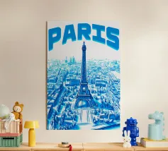 Questo poster turchese di Parigi offre una visione urbana innovativa, combinando vedute della città, architettura elegante e un'intensa tavolozza di colori incentrata sulla Torre Eiffel. Il suo trattamento digitale dinamico è perfetto per un arredamento contemporaneo. Date una spinta al vostro arredamento!
