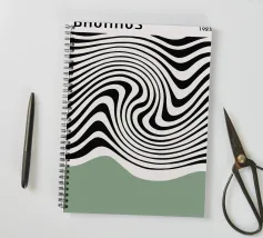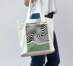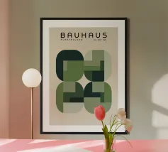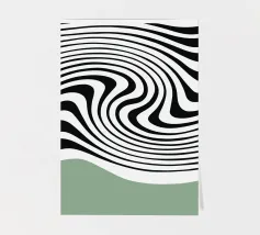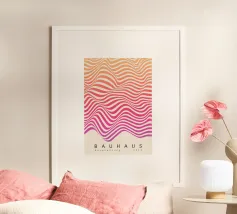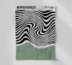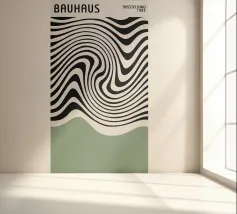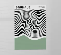 Questa audace opera d'arte Bauhaus presenta ipnotiche linee ondulate in bianco e nero che scorrono lungo la composizione, con il testo della mostra Bauhaus in un classico layout modernista. Un'opera astratta di grande impatto che fonde il design tedesco vintage con l'arte grafica senza tempo. Fornito in altissima risoluzione (7000x5000 pixel, 300 dpi), perfetto per gli appassionati di design e per gli interni minimal.