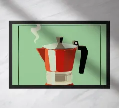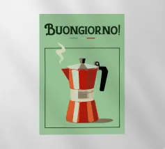 caffè caffettiera moka poster caffè retrò caffè italiano saluto mattutino caffè in infusione caffettiera rossa bandiera italiana utensili da cucina vapore dal caffè sfondo verde arredamento cucina bevanda colazione attrezzatura da cucina bevanda calda caffettiera metallica cultura del caffè caffeina elettrodomestico da cucina