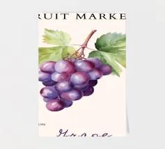 Arricchite la vostra casa con questo poster del mercato della frutta "Grape", che fa parte della collezione n. 16. Questa squisita stampa botanica presenta un vivace grappolo d'uva viola con foglie verdi, reso in uno splendido stile acquerello. Perfetta per aggiungere un tocco di freschezza ed eleganza alla cucina, alla zona pranzo o a uno spazio a tema vinicolo, questa opera d'arte conferisce un'atmosfera ricca e naturale. Realizzata come opera d'arte digitale ad alta risoluzione a 7000x5000 pixel e 300 dpi, garantisce un'eccezionale nitidezza e una ricca riproduzione dei colori, mettendo in risalto la succosa bellezza di questi frutti classici.