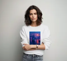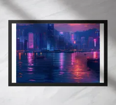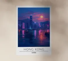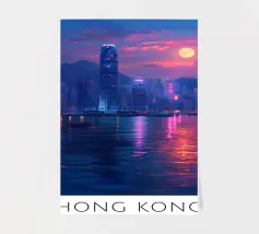 Ammirate l'energia elettrica del Victoria Harbour di Hong Kong, Cina, di notte, catturata in questa ipnotica opera d'arte digitale. I grattacieli illuminati si riflettono intensamente sull'acqua sottostante, creando uno straordinario effetto scintillante dominato da rosa, viola e blu neon. Una grande e luminosa luna piena si staglia nel cielo crepuscolare, amplificando la drammatica atmosfera neo-noir/synthwave. Questa vista cattura perfettamente l'estetica futuristica e vivace della città. Questo poster digitale di qualità superiore (7000x5000 pixel, 300 dpi) garantisce dettagli eccezionali e brillantezza dei colori.