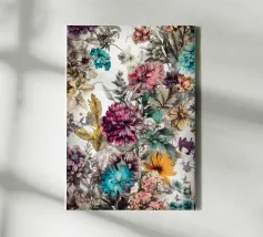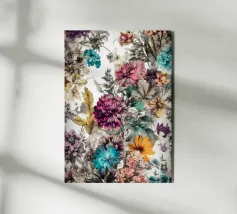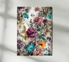 Illustrazione di un prato rigoglioso pieno di piante e fiori selvatici.