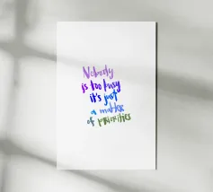 Dal 2014 lo studio di design bavarese Brushmeetspaper celebra il suo amore per il lettering e i font fatti in casa. Come? Scrivendo a mano tutti i propri disegni con acquerello, spirito e cuore. Per Brushmeetspaper le stampe di alta qualità e la carta migliore sono importanti quanto i colori vivaci. Il risultato è costituito da stampe e frasi divertenti che ci parlano con il cuore e che quindi arrivano dritte al cuore.