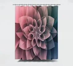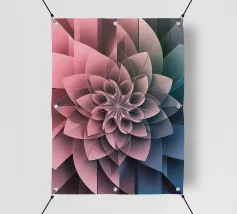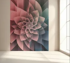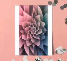 Un'ipnotica opera d'arte floreale astratta con delicati petali sovrapposti nei toni del rosa e del blu. Gli intricati motivi geometrici creano un senso di profondità e dimensione, rendendo questo pezzo un'aggiunta accattivante a qualsiasi interno moderno.