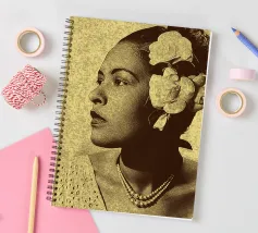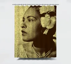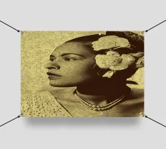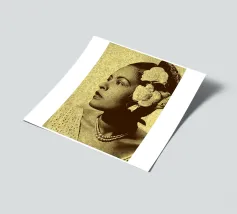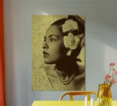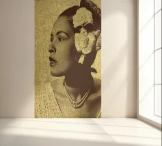 Un'iconica vista laterale di Billie Holiday con il suo fiore caratteristico: serena, orgogliosa e senza tempo.