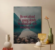 Questa citazione ispiratrice ci ricorda che è giusto prendersi il proprio tempo e avanzare lentamente. Il vero pericolo è rimanere fermi. Questa opera d'arte cattura la bellezza della natura e il potere della perseveranza.