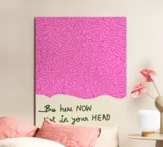 Questa stampa giocosa vi ricorda delicatamente di tornare al momento presente. Con vivaci volute rosa e una citazione scritta a mano, è divertente e allo stesso tempo rassicurante. Perfetta per il vostro spazio di lavoro, per la camera da letto o per qualsiasi altro luogo in cui la vostra mente tende a vagare.