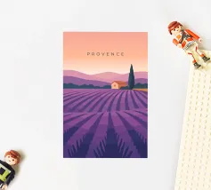 Design da viaggio provenzale decorativo e minimalista per chi ama i campi di lavanda del sud-est della Francia. Idea regalo ideale per chi ama viaggiare in Francia.