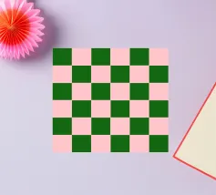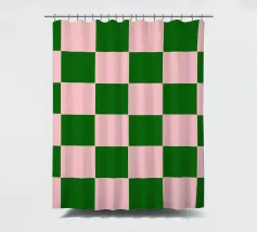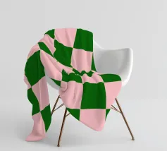 Un sorprendente motivo a scacchiera in viola e verde smeraldo. I colori ricchi evocano un'accogliente atmosfera autunnale, mentre il layout geometrico pulito lo rende un'opzione eclettica ed elegante per l'arredamento della casa o del dormitorio.