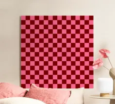 Un classico motivo a quadri retrò nei toni del bordeaux e del rosa vivace. Perfetto per aggiungere un tocco giocoso ma elegante all'arredamento eclettico della casa, soprattutto durante le festività.
