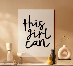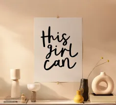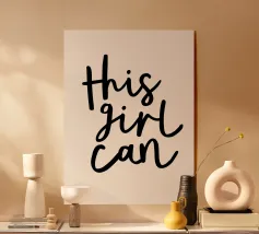 Datevi forza con la stampa tipografica "This Girl Can". Questo messaggio audace prende vita in un'elegante scritta nera in corsivo disegnata a mano, che contrasta splendidamente con uno sfondo bianco. La qualità artigianale del testo aggiunge un tocco personale, rendendo ogni pezzo unico. Perfetto per la camera da letto, l'ufficio o qualsiasi altro spazio in cui sia necessaria una dose quotidiana di girl power, questo design versatile serve a ricordare costantemente la forza e la capacità femminile. Disponibile su diversi prodotti, è un regalo ideale per le donne ambiziose, le femministe e chiunque voglia celebrare il potere femminile.