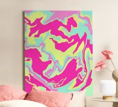 Con questa stampa sembra di camminare in un sogno al neon. I rosa audaci e i tenui colori pastello vibrano insieme. Perfetta per quando volete che la vostra parete gridi "buona energia!".