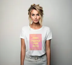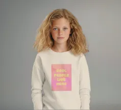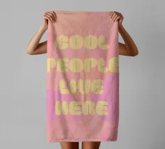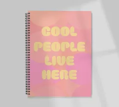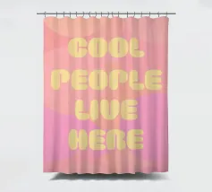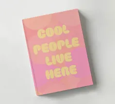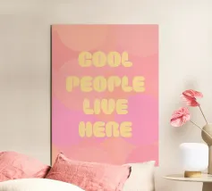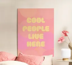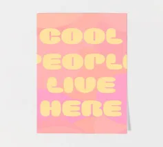 L'illustrazione tipografica con la delicata scritta gialla "Cool People Live Here" su morbidi cerchi rosa e rosa crea un'atmosfera invitante e aggiunge stile e personalità a qualsiasi ambiente.