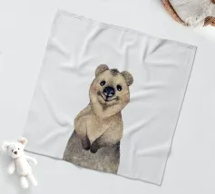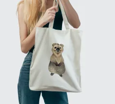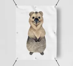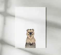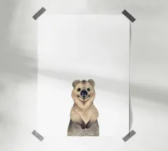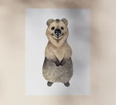 Un quokka, l'animale più amichevole del mondo. Disegnato a mano con acquerelli. Tutti hanno bisogno di un po' di buon umore ogni giorno.