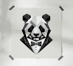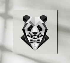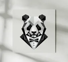 Un affascinante panda, elegantemente raffigurato in una giacca da pranzo. Le forme geometriche e le linee chiare conferiscono al motivo un tocco di modernità, mentre il look elegante emana un tocco di umorismo.Raffigurazione astratta e geometrica di un panda in giacca da pranzo Linee chiare e colori contrastanti creano dinamismo Simboleggia eleganza, fascino e umorismo Design moderno con un tocco originale Perfetto per gli amanti dell'arte con senso dell'umorismo e stile