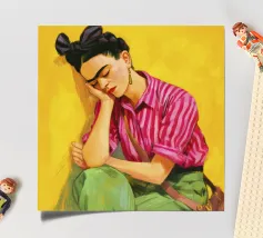 Questa suggestiva opera d'arte raffigurante una giovane musa messicana a un tavolo verde illumina qualsiasi ambiente con colori vivaci. Il suo giocoso top a righe e il fiocco per capelli cremisi spiccano su uno sfondo dorato, fondendo l'atmosfera di metà secolo con il fascino boho chic. Ideale per stampe d'arte, tessuti e decorazioni per la casa, questo disegno irradia calore e personalità. Perfetto per chi è alla ricerca di accenti eclettici, il pezzo fonde influenze culturali e stile retrò per creare un punto focale accattivante che ispira. Celebra il patrimonio culturale.