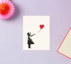l suo iconico stencil di Banksy raffigura una giovane ragazza che raggiunge, o forse ha appena liberato, un palloncino rosso a forma di cuore. È un simbolo toccante, ma semplice, dell'innocenza, della speranza, della perdita e della natura fugace dei sogni. L'opera è famosa per la sua performance di autodistruzione nel giorno dell'asta.