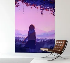 Ragazza in piedi nel vigneto di sera Lofi Art
