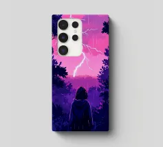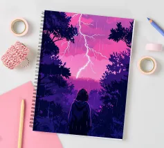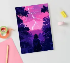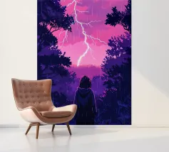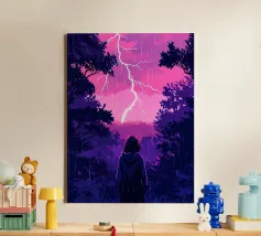 Ragazza in una giungla bloccata in una tempesta di fulmini notte Lofi Art