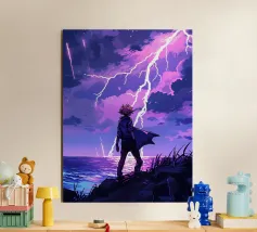 Ragazzo in una tempesta di fulmini Weather Lofi Art