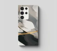 Bianchi e neri vorticosi si intrecciano con l'oro in morbidi archi ritmici.